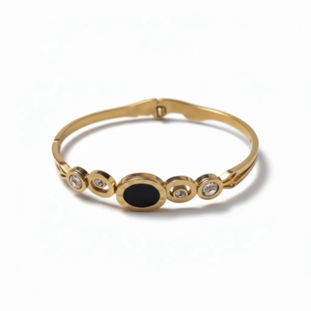 The Anarkali Royal Bangle is all about making a grand entrance. Inspired by the beauty of classic royal designs, this stainless-steel bangle is crafted to make you feel extra special. It’s the perfect mix of traditional charm and modern shine, making it a must-have for your jewelry box.