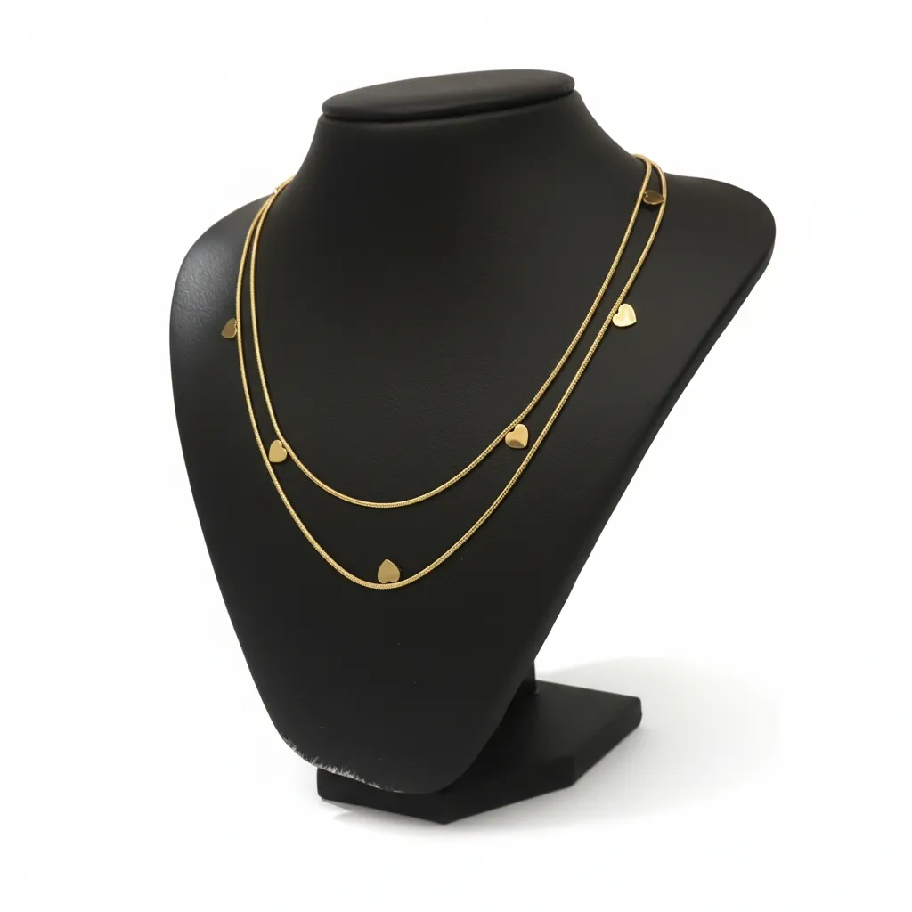 Design: Double-layered snake chain with heart station charms.