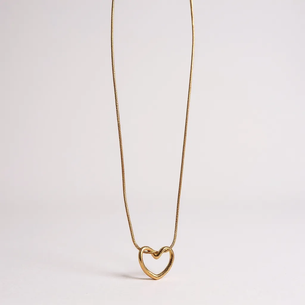 This sleek gold stainless steel snake chain features a modern open-heart pendant. It is waterproof, tarnish-free, and perfect for wearing alone or layering with other chains.